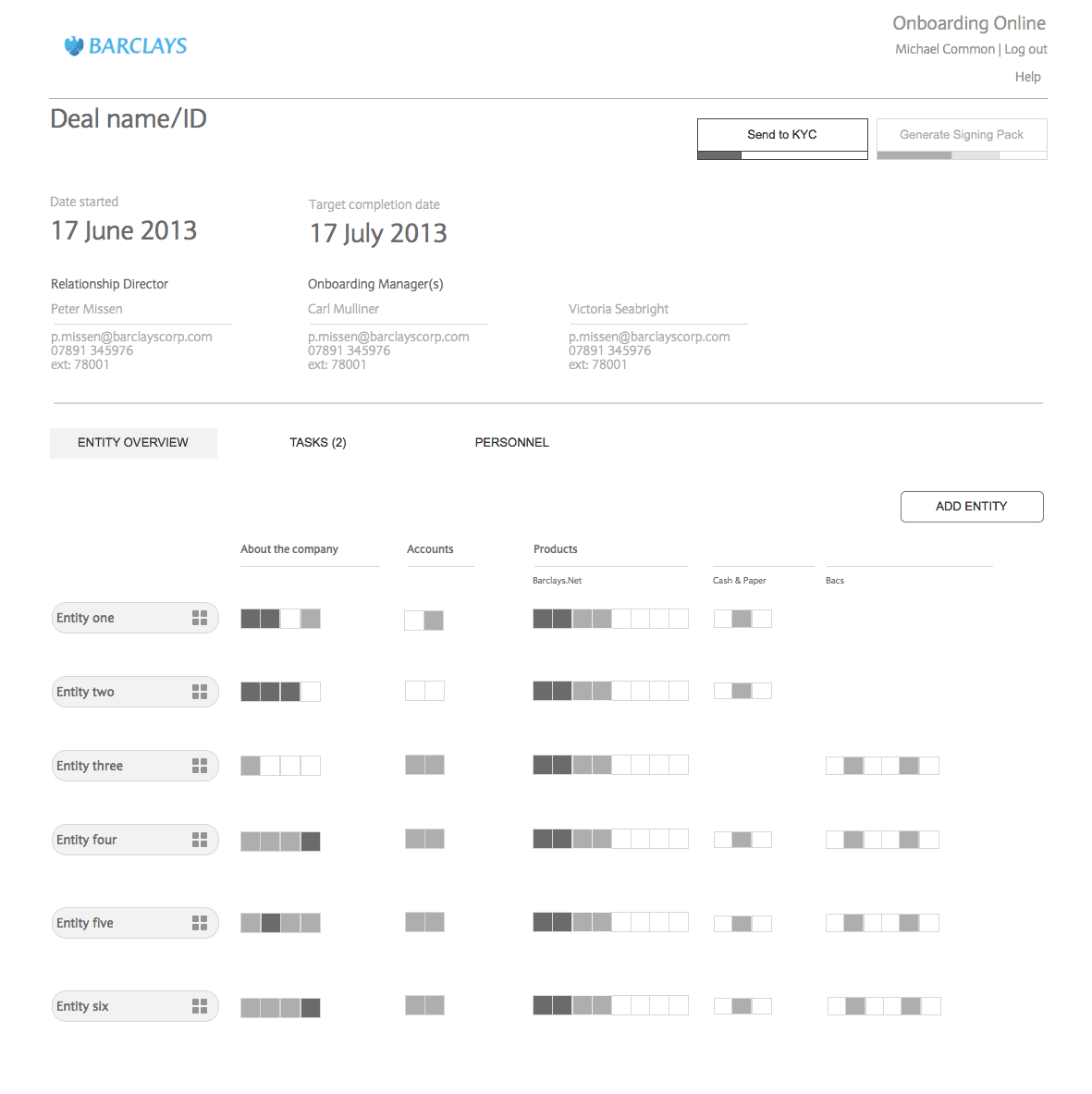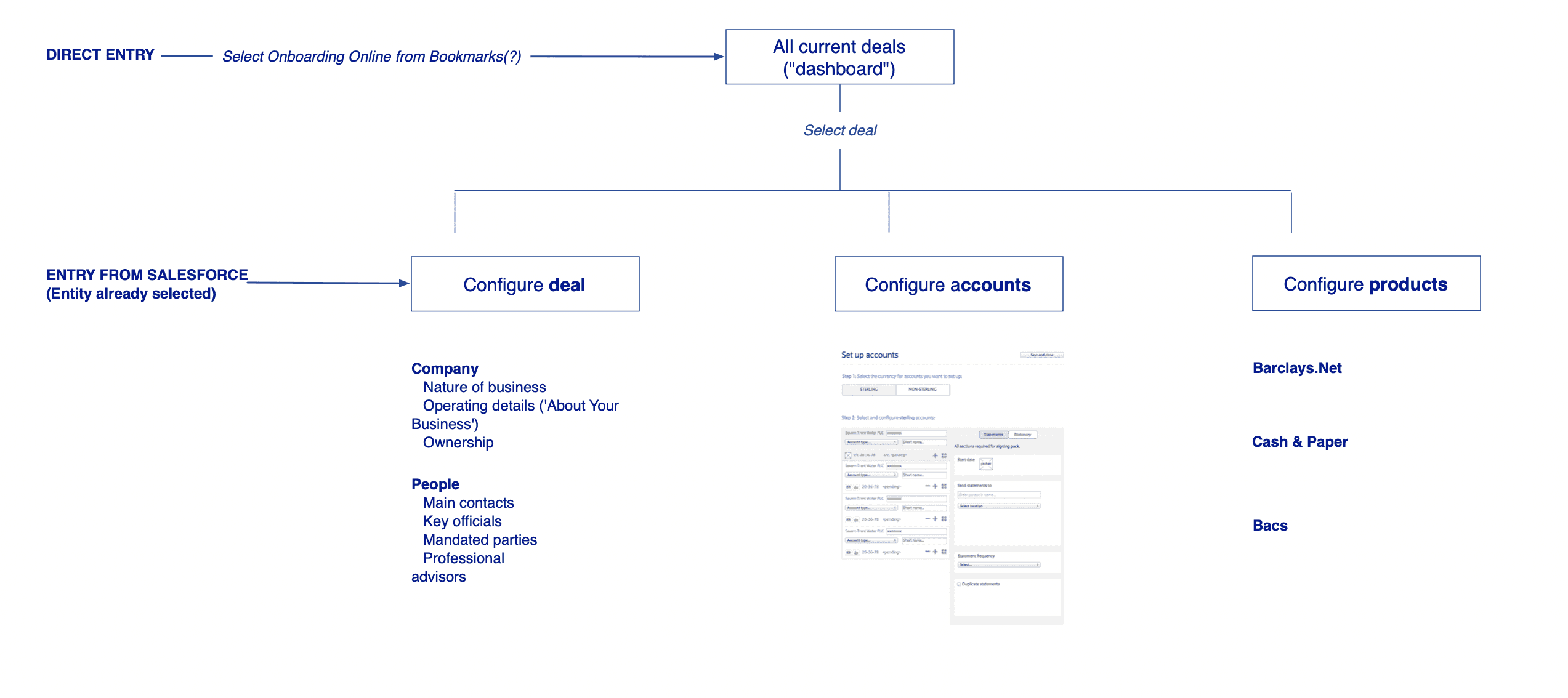 The principal users of the system, Relationship Managers (RMs) were responsible for guiding clients through this process using a system that mirrored internal banking structures rather than the needs of their role.